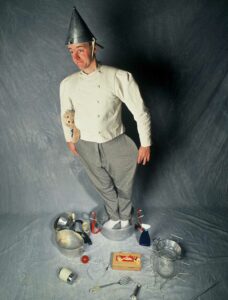 Damien Bouvet est un génie ! Homme-orchestre s’armant d’ustensiles de cuisine et d’objets du quotidien, il construit un monde en un tour de main. Debout, toujours debout, il porte sur lui le chapiteau, la ménagerie et la piste dorée ; il a sous la main la cage aux fauves, la ronde des chevaux et l’écuyère.